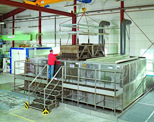 Dopo un primo ciclo di lavaggio, le piastre sono sottoposte ad ulteriori cicli di lavaggio basici e/o acidi in base al livello di sporco che presentano ed in base alla tipologia di materiale della piastra stessa.